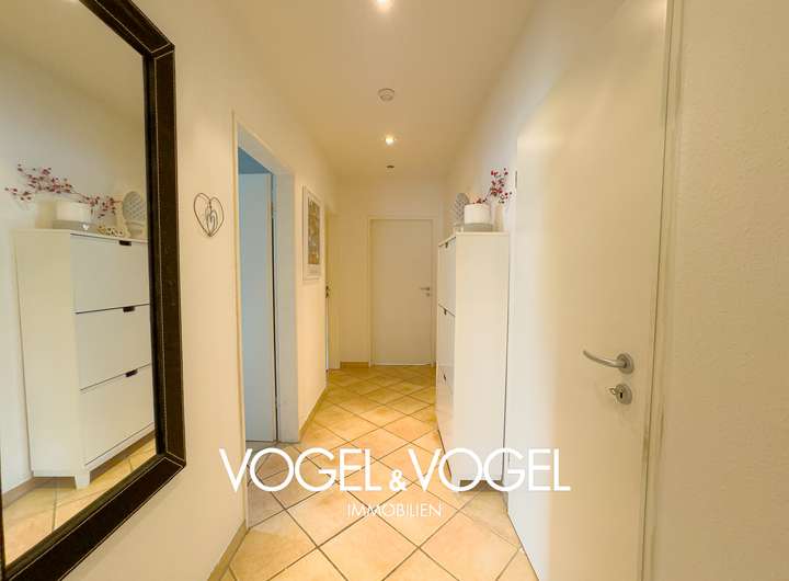 Das Entree empfängt Sie hell und großzügig, mit elegantem Fliesenboden, klarer Struktur und einem separatem Gäste-WC – hier beginnt der erste Moment des Wohlfühlens.