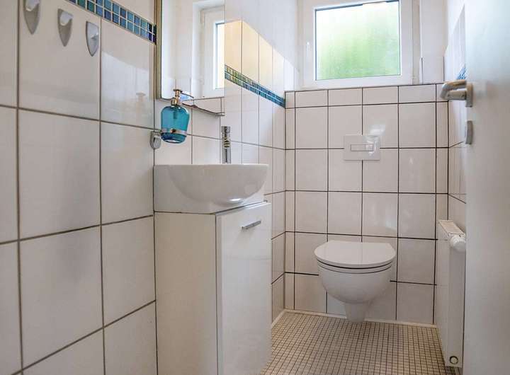 • Modernes, ebenerdiges Tageslichtbad mit Dusche im Erdgeschoss