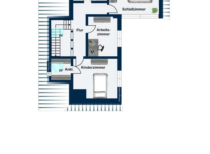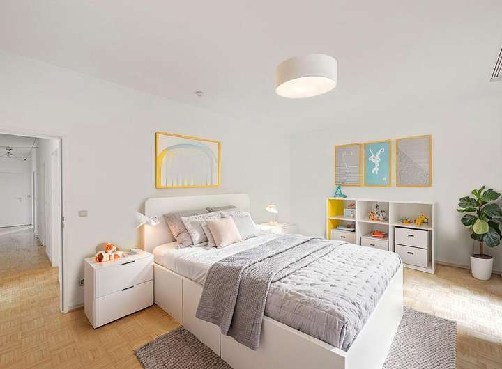 Der Privatbereich im Erdgeschoss bietet drei Kinderzimmer, ein Gäste-WC und einen zusätzlichen kleinen Garderobenraum. Das Haus ist lichtdurchflutet und vermittelt zu jeder Tageszeit eine freundliche Wohnatmosphäre...