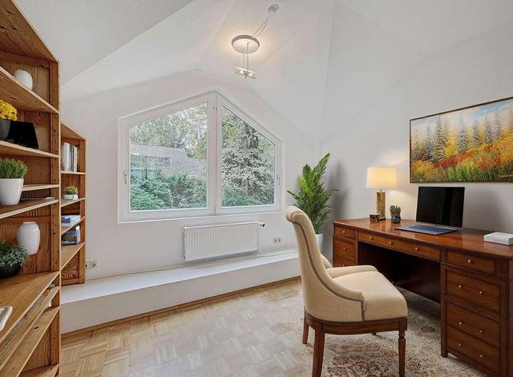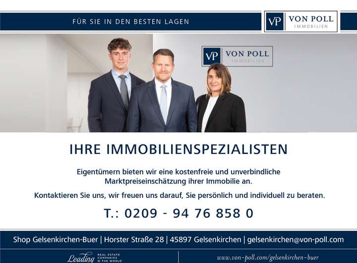 Diese besondere Immobilie liegt in einer der begehrtesten Wohnlagen von Gelsenkirchen-Buer, eingebettet in eine ruhige und grüne Umgebung. Die Straße, die dezent und ohne Durchgangsverkehr am Grundstück vorbeiführt, vermittelt sofort ein Gefühl von Privatsphäre und Diskretion. Die Nachbarhäuser sind mit großzügigem Abstand zueinander errichtet – hier genießt man Ruhe und Rückzug, ohne auf die Vorzüge einer zentralen Lage verzichten zu müssen.