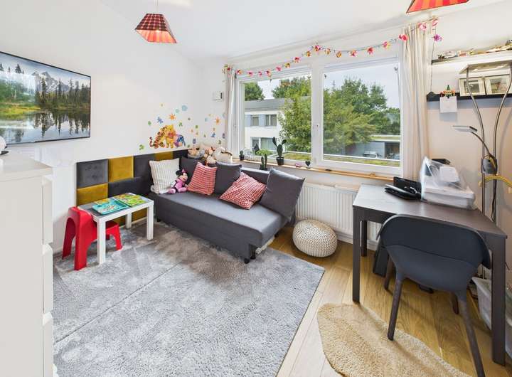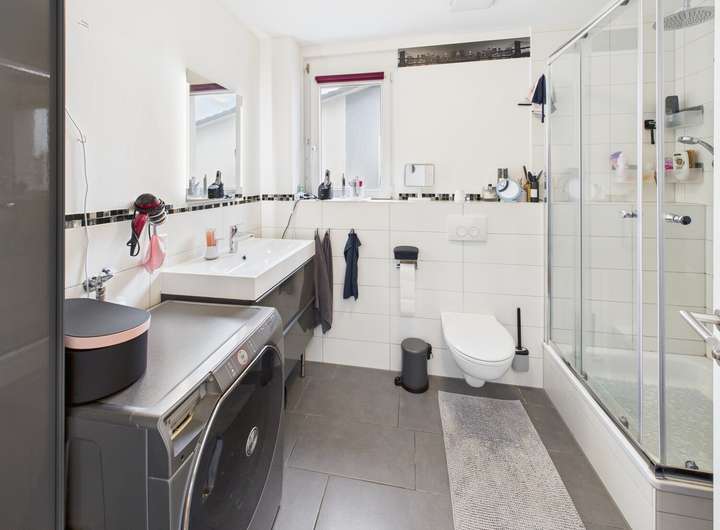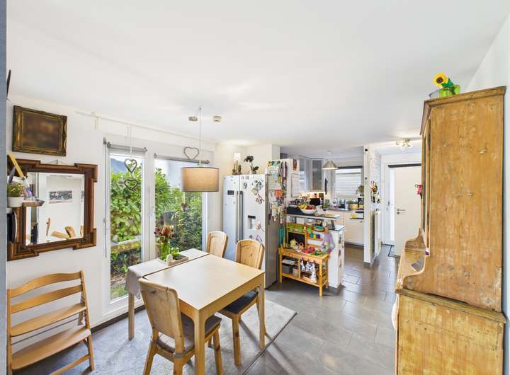 Das Untergeschoss bietet weitere Nutzungsmöglichkeiten. Ein lichtdurchflutetes Zimmer eignet sich ideal als Büro, Gäste- oder Kinderzimmer, während ein zusätzlicher Raum derzeit als Hauswirtschaftsraum genutzt wird.