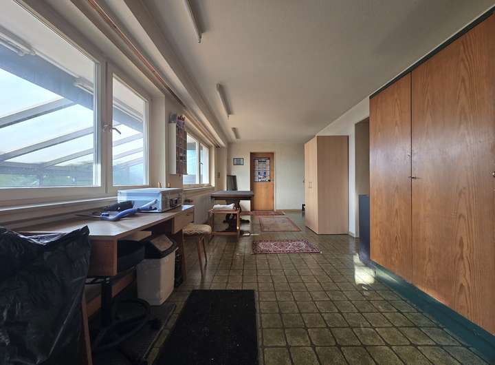 Im Untergeschoss finden sich neben einem Keller- und Abstellraum auch ein flexibel nutzbares Zimmer, ideal als Kinderzimmer, Büro oder Hobbyraum, sowie der angrenzende Wintergarten.