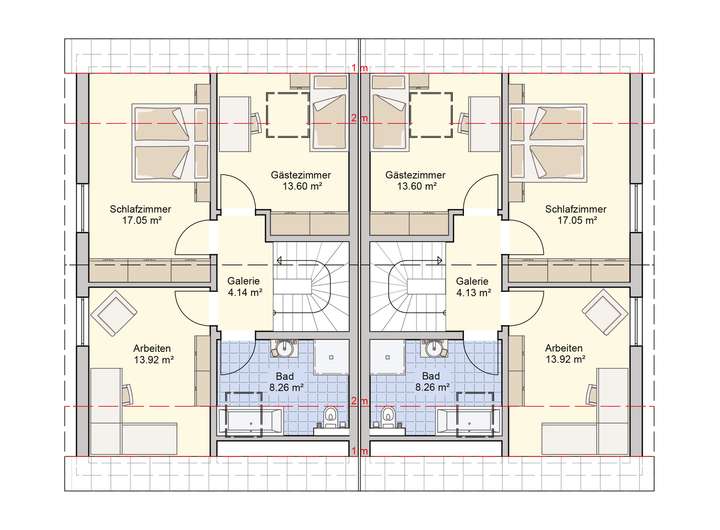 Das Grundstück, das Ihnen zur Verfügung steht, wird in vier exklusive Doppelhäuser unterteilt, mit insgesamt 8 modernen Wohneinheiten. Jede Doppelhaushälfte wird mit etwa 500 m² Grundstücksfläche ausgestattet und bietet Ihnen so viel Raum für Ihre Wünsche und Bedürfnisse.