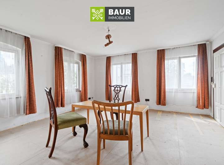 Nicht ohne Charme ist ein alter Baumbestand, der dem Grundstück eine grüne und gewachsene Atmosphäre verleiht. Bei einer Neubebauung bietet sich so auch die Chance, Ihr neues Zuhause in ein natürliches Umfeld einzubetten.