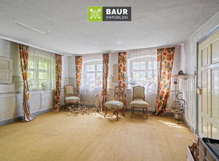 Der Altbestand – ein ehemaliges Bauernhaus und Wagnerei mit angebauter Scheune aus der Zeit vor 1900 – befindet sich in einem stark sanierungsbedürftigen oder gar abrisswürdigen Zustand!