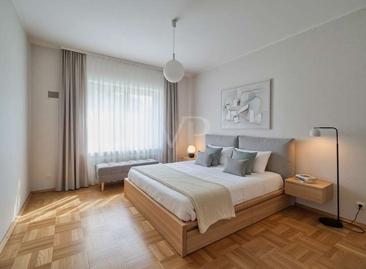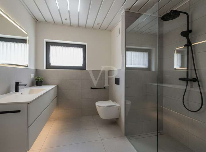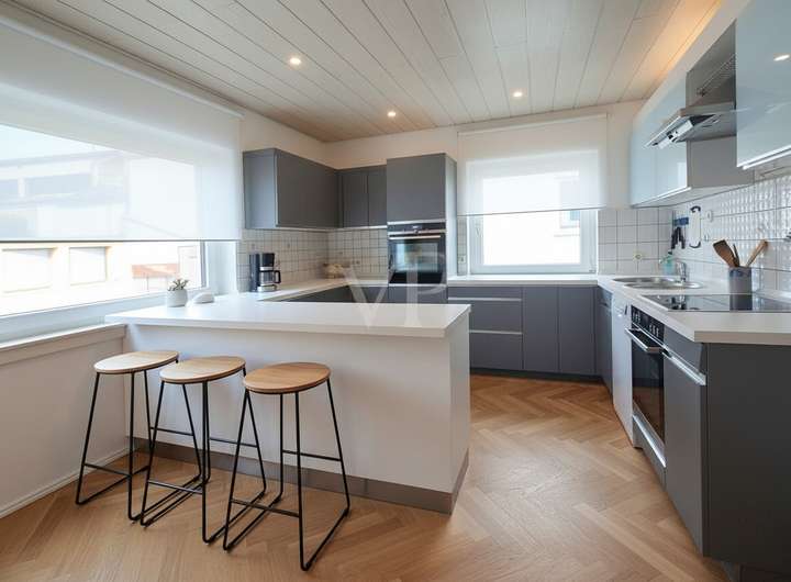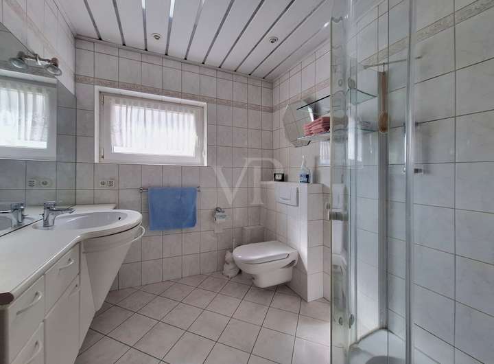 Neben vier lichtdurchfluteten Zimmern, einer Küche mit Frühstücksplatz, einem Tageslichtbad und einem Gäste-WC im Erdgeschoss bietet das Untergeschoss ein weiteres Bad sowie zwei vielseitig nutzbare Räume – ideal für Homeoffice, Fitness oder kreative Hobbys. Zusätzlich finden sich hier auch der Heizungsraum und weitere Wirtschaftsräume sowie der Zugang zur Garage.