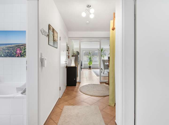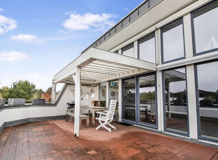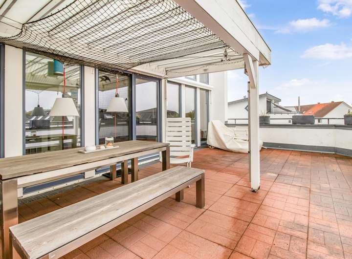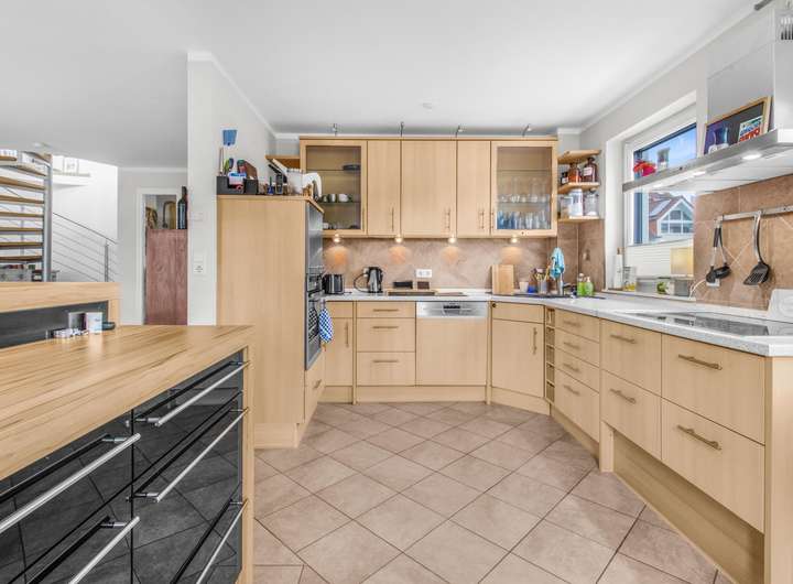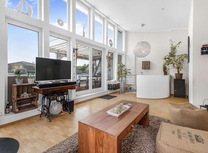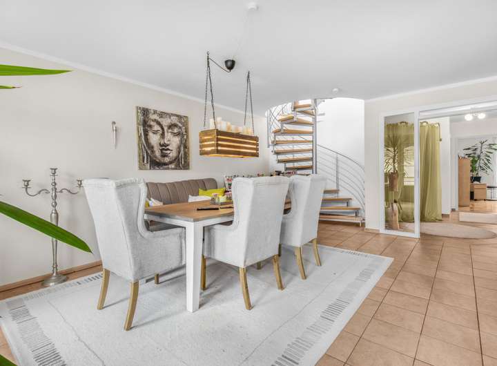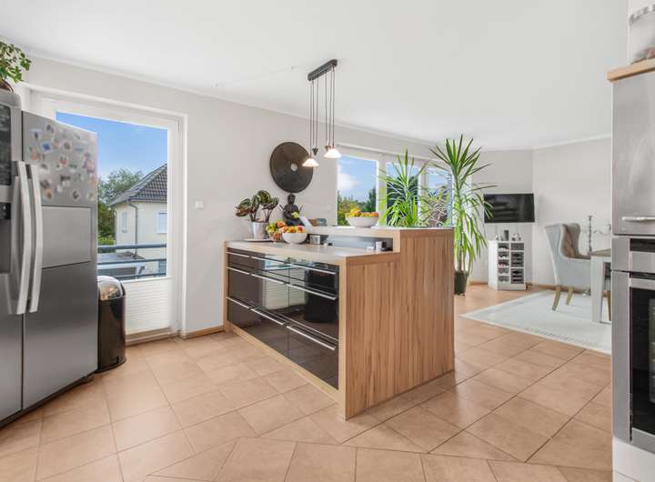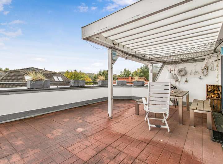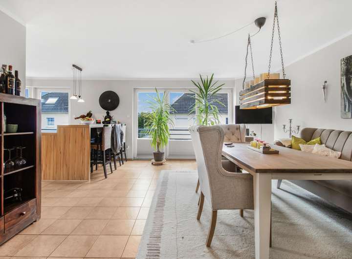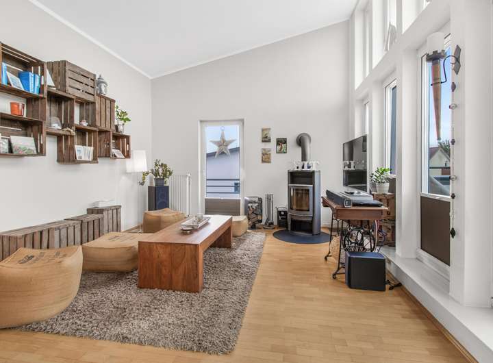 Wenn Sie die Wohnungstür öffnen ist es schwer vorzustellen, dass es sich bei dieser Immobilie um eine Eigentumswohnung handelt, denn so viel Platz und Wohnkomfort bietet häufig nur ein ganzes Haus. Durch wenige Stufen erreichen Sie das Obergeschoss eines Zweifamilienhauses, welches keine Wünsche offen lässt. In der ersten Etage befindet sich ein offenes Wohn- und Esszimmer mit angrenzender Küche, eine Diele mit Abstellraum, zwei Schlafzimmer und ein Vollbad. Durch eine geschmackvolle Wendeltreppe erreichen Sie das Dachgeschoss, welches über ein weiteres Schlafzimmer mit angrenzendem Badezimmer und zusätzliches Wohnzimmer mit Kaminofen verfügt. Eine ideale Alternative zum Garten ist die traumhafte Dachterrasse, die genug Platz für eine Sitzecke und mehr bietet.