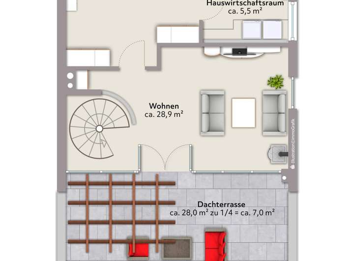 - Hauswirtschaftsraum im Dachgeschoss (mit Waschmaschinenanschluss)