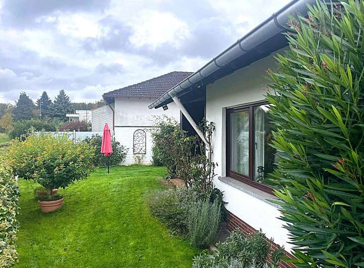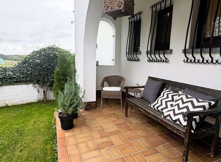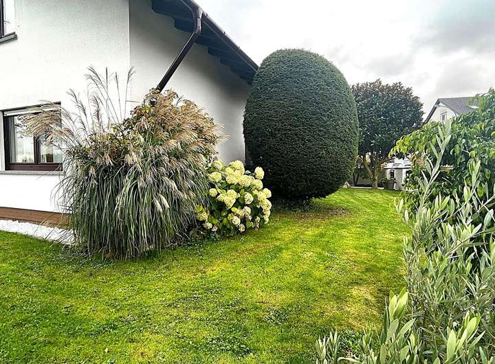 •ca. 420 qm schön bewachsener, umlaufender Garten, uneinsehbar, mit 3 überdachten Terrassen