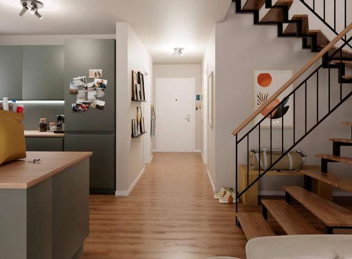 Im Erdgeschoss dieses eleganten Einfamilienhauses erwartet Sie ein lichtdurchfluteter Wohnbereich, der direkt auf die sonnige Terrasse mit Südostausrichtung führt – der perfekte Ort für entspannte Morgenstunden oder gemütliche Abende. Die offene Wohnküche lädt zu gemeinsamen Kochabenden und kulinarischen Momenten mit Familie und Freunden ein. Zwei stilvolle Badezimmer sorgen für Komfort und Bequemlichkeit für die ganze Familie. Die eigene Garage rundet das praktische Angebot ab. Mit insgesamt fünf Zimmern bietet dieses Haus vielfältige Möglichkeiten zur individuellen Gestaltung und schafft ein Zuhause, das Gemütlichkeit und Freiheit zugleich vermittelt. Modernste Technik, darunter eine hauseigene Wärmepumpe und Photovoltaik, sorgt zusätzlich für ein nachhaltiges, komfortables Wohnerlebnis.