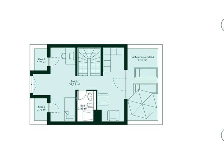 - Studio mit Bad im Dachgeschoss