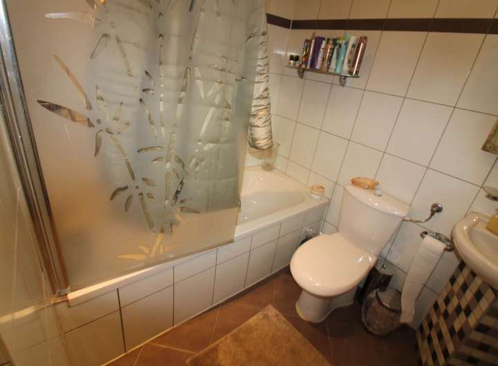 Die funktionale Küche ist mit einer Einbauküche ausgestattet und gefliest. Das Badezimmer ist praktisch gestaltet, ebenfalls gefliest und verfügt über eine komfortable Wannendusche und ein Fenster.