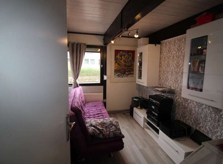 Dieser gepflegte Reihenbungalow aus dem Jahr 1973 besticht durch seine funktionale Raumaufteilung und den durchdachten Grundriss. Auf ca. 90 m² erwarten Sie 4 helle Zimmer, darunter ein großzügiger Wohn- und Essbereich. Dieser ist mit Laminat ausgelegt, was für ein warmes und gepflegtes Ambiente sorgt. Bodentiefe Holzfenster sorgen im Wohn- und Schlafbereich sorgen für viel Licht und direkten Zugang zur Terrasse sowie zum pflegeleichten Garten mit kleinem Holzgerätehaus.