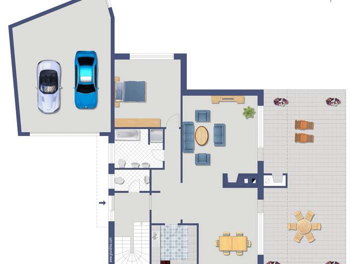 •Garage: Doppelgarage sowie eine gepflasterte Einfahrt mit Platz für mindestens zwei weitere Fahrzeuge