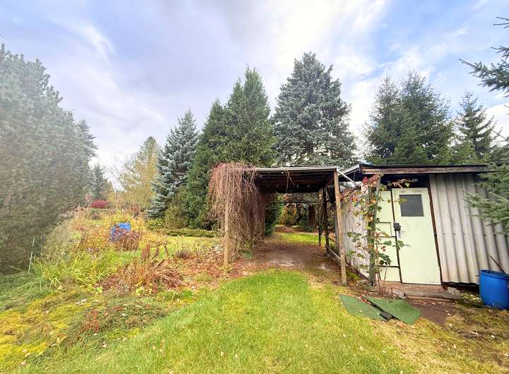Das Grundstück liegt in einer ruhigen, gewachsenen Wohnsiedlung und besticht durch seinen charmanten Altbaumbestand mit Apfelbäumen und verschiedenen Sträuchern. Die grüne Umgebung schafft eine idyllische und geschützte Atmosphäre – ideal für Naturliebhaber und alle, die Wert auf Ruhe und Privatsphäre legen.