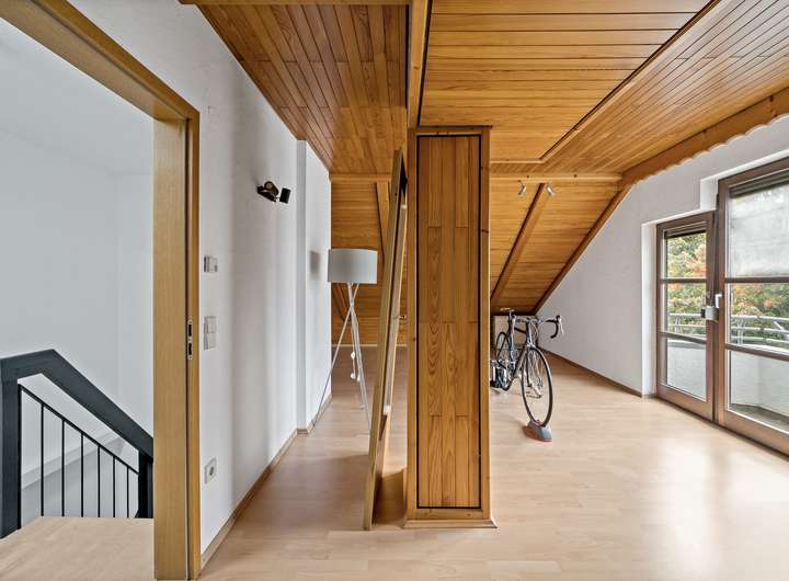 Das 2. Obergeschoss ist als großes Studio hergestellt mit einem kleinen Balkon.