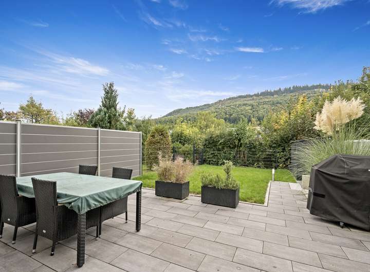 Der Garten ist 2024 neu angelegt worden und bietet mit der großzügigen Terrasse genügend Platz um mit der Familie und den Freunden schöne Stunden zu verbringen.