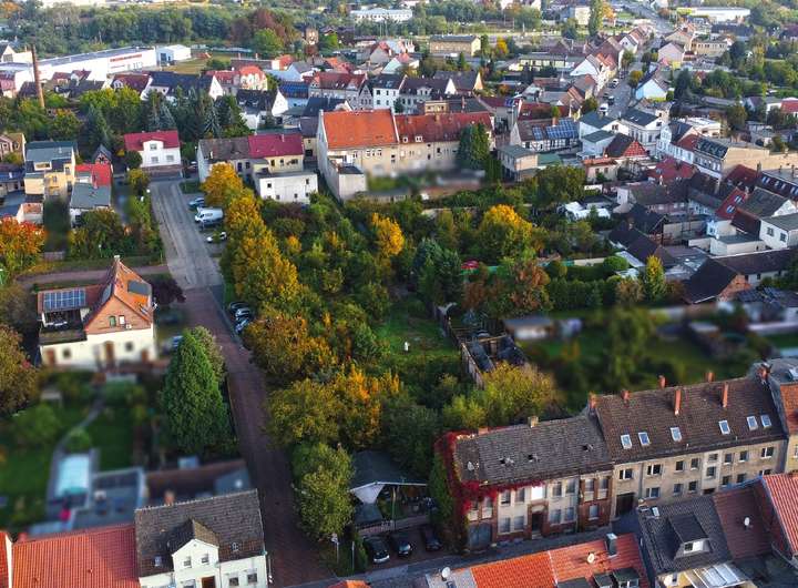 Ungleichmäßiges geschnittenes Baugrundstück im Stadtzentrum, weitgehend unbebaut, straßenbegleitend an der Langen Straße befindet sich noch ein ehemaliges Wohnhaus (Wohn- Nutzfläche ca. 240 m² (grob geschätzt) und ein ehemaliger Anbau (auf Abriss).