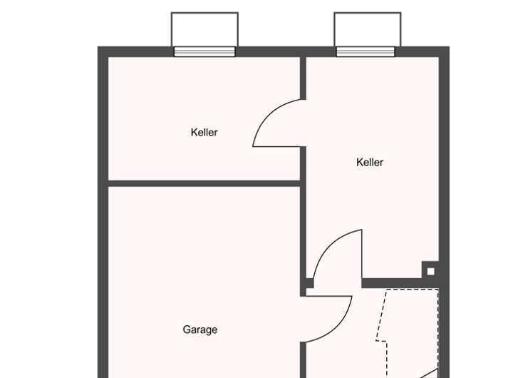 Untergeschoss: Flur, zwei Kellerräume, Garage (vom Flur aus begehbar).