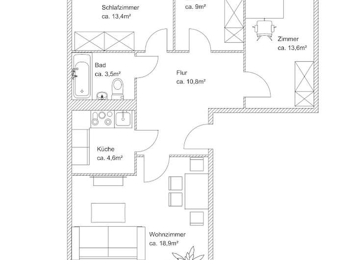 Hier haben Sie die Möglichkeit eine 4-Raum-Wohnung im 3. Obergeschoss anzumieten. Sie ist großzügig geschnitten und verfügt über eine Küche, ein Wannenbad, sowie einen großzügigen Balkon.