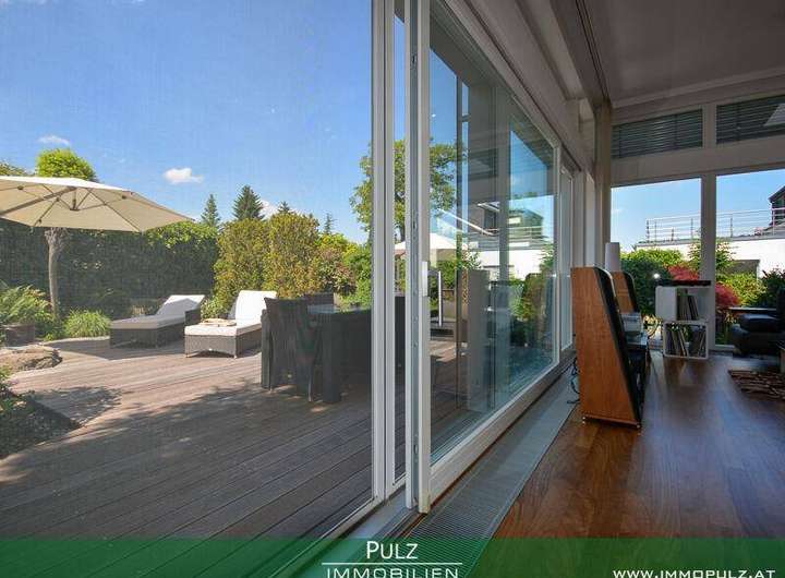 offene Wohnebene im EG, sowie den Fensterglas-Elementen in den 2008 angebauten Wintergarten