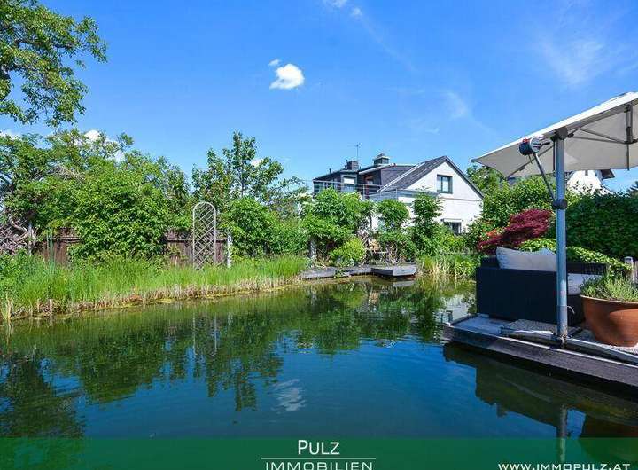 • gepflegter, gärtnerisch angelegter Garten mit Schwimmbiotop