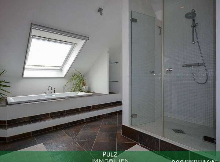 • exklusives Badezimmer (18,44 m2) mit zwei Waschbecken, Badewanne und Duschkabine
