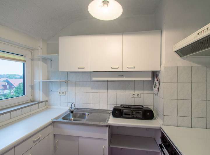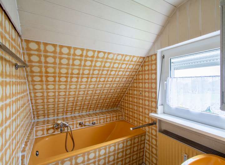 OG: drei Zimmer, Küche mit Essbereich, GWC und Bad mit Wanne