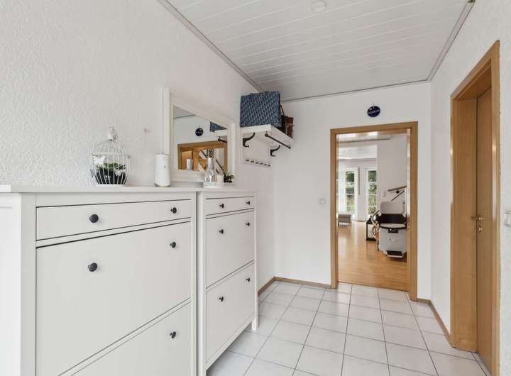 Zur Immobilie gehören außerdem eine Garage sowie drei Außenstellplätze direkt vor dem Haus. Ein geräumiger Kellerraum bietet zusätzlichen Stauraum.