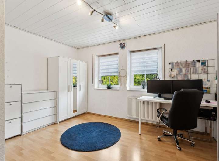 Die vier Schlafzimmer auf den oberen zwei Etagen bieten ausreichend Raum für die ganze Familie – ob als Kinderzimmer, Gästezimmer oder Homeoffice. Ein modernes Bad im 1. Obergeschoss, einem zusätzlichen Bad im 2. Obergeschoss sowie ein zusätzliches Gäste-WC im Erdgeschoss sorgen für höchsten Alltagskomfort.