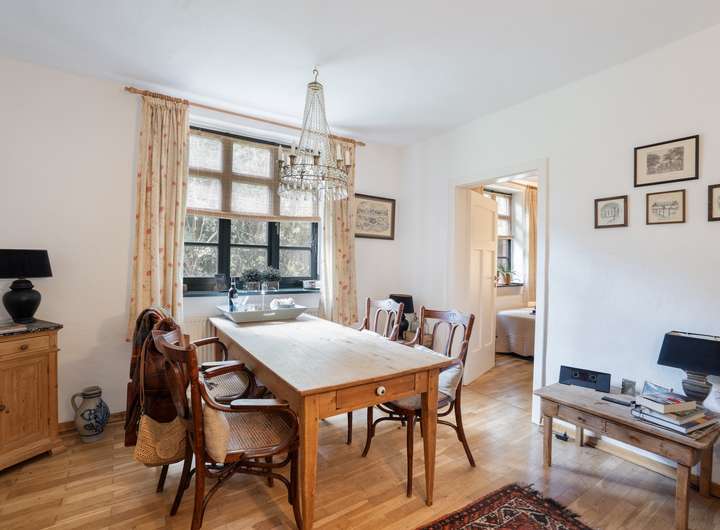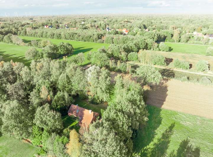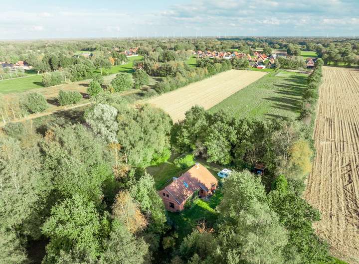 Dieses einladende Einfamilienhaus, vermutlich um 1900 (unbekannt) errichtet, besticht durch seinen historischen Charme und bietet ideale Voraussetzungen für naturnahes, gemütliches Wohnen. Auf einem weitläufigen Grundstück von rund 4.592 m², eingebettet in alten Baumbestand und vollständig eingewachsen, genießen Sie absolute Ruhe, Privatsphäre und pure Natur. Das Haus bietet eine Wohn-/Nutzfläche von ca. 253m² und überzeugt durch eine gemütliche, harmonische Raumaufteilung. Im Erdgeschoss empfängt Sie ein einladender Flur, der in die Küche und das angrenzende Esszimmer führt – beide mit schönem Parkettboden, der Wärme und Behaglichkeit ausstrahlt. Das großzügige Wohnzimmer mit Blick ins Grüne lädt zum Entspannen ein. Ein Schlafzimmer, zwei Badezimmer sowie ein Hauswirtschaftsraum komplettieren das Erdgeschoss. Über eine Holztreppe gelangen Sie ins Obergeschoss, wo ein weiteres Schlafzimmer mit Waschbecken und gepflegtem Parkettboden auf Sie wartet. Die Holzdielen und sichtbaren Details schaffen eine wohnliche, natürliche Atmosphäre mit viel Charakter. Das Haus wird über eine Gas-Zentralheizung (Baujahr 2009) beheizt. Holzfenster unterstreichen den rustikalen Charme, während die Kleinkläranlage eine nachhaltige Lösung bietet. Ein Carport sorgt für komfortablen Schutz Ihres Fahrzeugs.