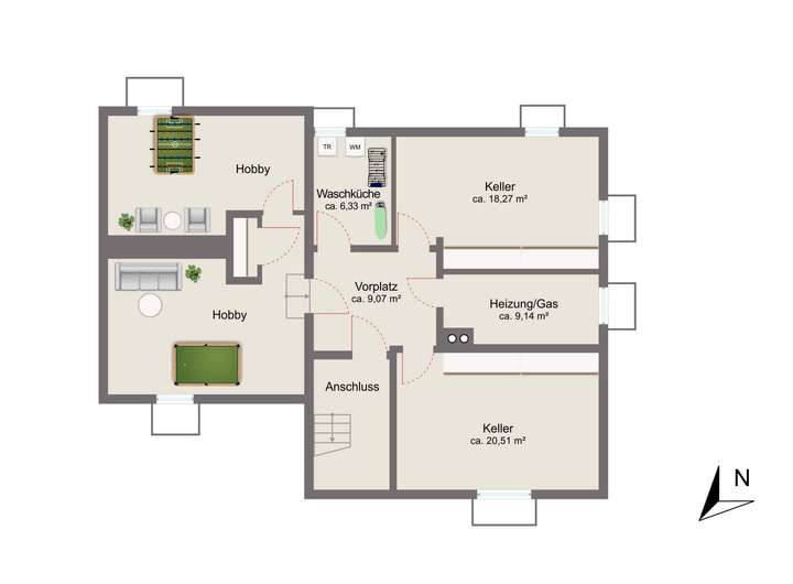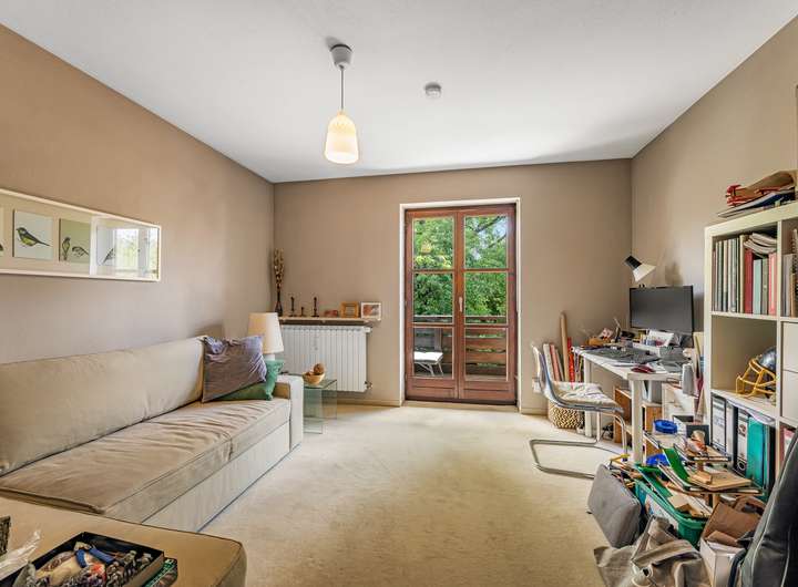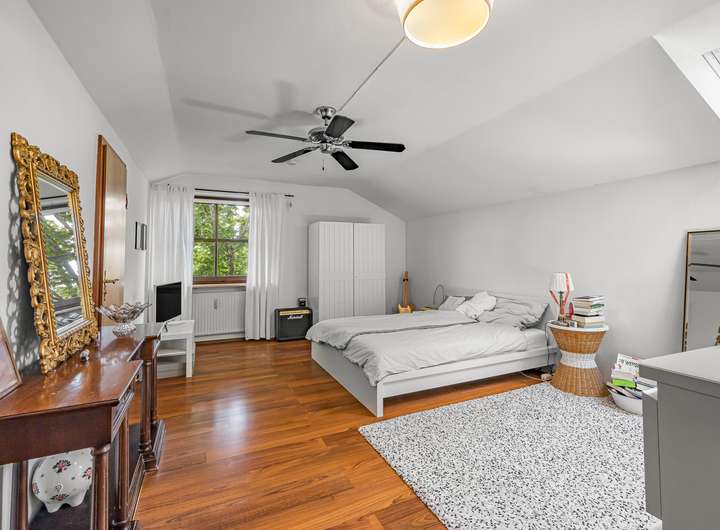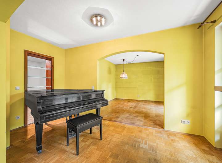 Zum Verkauf steht eine besondere Doppelhaushälfte, die ausschließlich über einen Zwischenbau mit dem Nachbarhaus verbunden ist. Dadurch wirkt sie wie ein freistehendes Einfamilienhaus und bietet ein hohes Maß an Privatsphäre. Das Grundstück umfasst insgesamt ca. 829 m² und ist nicht real geteilt. Für die Gartenfläche besteht ein Sondernutzungsrecht von ca. 561,28 m², welche durch einen Zaun räumlich vom Nachbargrundstück getrennt ist. Die Immobilie ist so konzipiert, dass sie sich in drei Wohneinheiten untergliedern lässt. Damit eignet sich das Haus hervorragend für Generationenwohnen oder für Familien, die individuelle Rückzugsmöglichkeiten schätzen. Im Erdgeschoss befinden sich großzügige Wohnräume: ein heller Wohnbereich, ein separates Esszimmer, eine Küche und ein Badezimmer. Abgerundet wird das Erdgeschoss mit einem Zweckraum von ca. 27,45 m², der flexibel nutzbar ist zum Beispiel als Home-Gym. Das Obergeschoss überzeugt mit einem offen gestalteten Wohn /Küchenbereich, der fließend in den Wohn und Essbereich übergeht. Ein Kamin und ein Balkon, der über die gesamte Hausbreite reicht, schaffen eine einladende Wohnatmosphäre. Ein Schlafzimmer sowie ein Badezimmer ergänzen diese Ebene. Das Dachgeschoss bildet eine weitere Wohneinheit mit Wohn und Essbereich, kleiner Küche, Schlafzimmer, Duschbad und zusätzlicher Abstellfläche im Speicher. Das Kellergeschoss bietet ein umfangreiches Raumangebot mit einem großen Hobbyraum, zwei weiteren Kellerräumen, einer Waschküche sowie dem Heizungs und Technikbereich. Diese Doppelhaushälfte vereint die Vorzüge eines freistehenden Einfamilienhauses mit den Nutzungsmöglichkeiten eines Mehrgenerationenhauses und bietet auf allen Ebenen ein durchdachtes Raumkonzept mit viel Platz und Flexibilität.