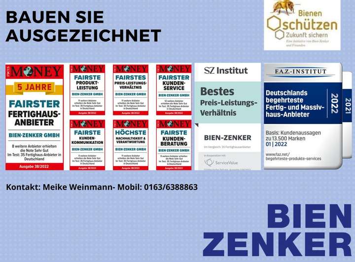 KFN und KFN-Q förderfähige Planung (Dank klimafreundlichem Neubau Förderkredit von bis zu 150 000 Euro; inkl. Baubegleitung durch eigene Bien-Zenker Sachverständige)