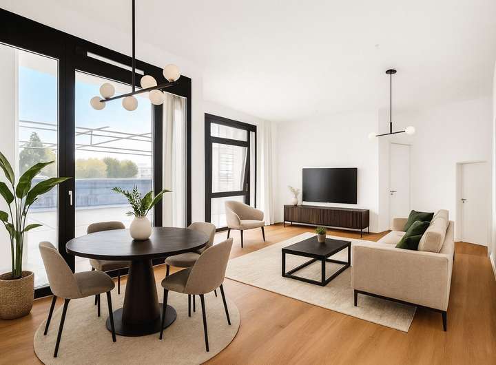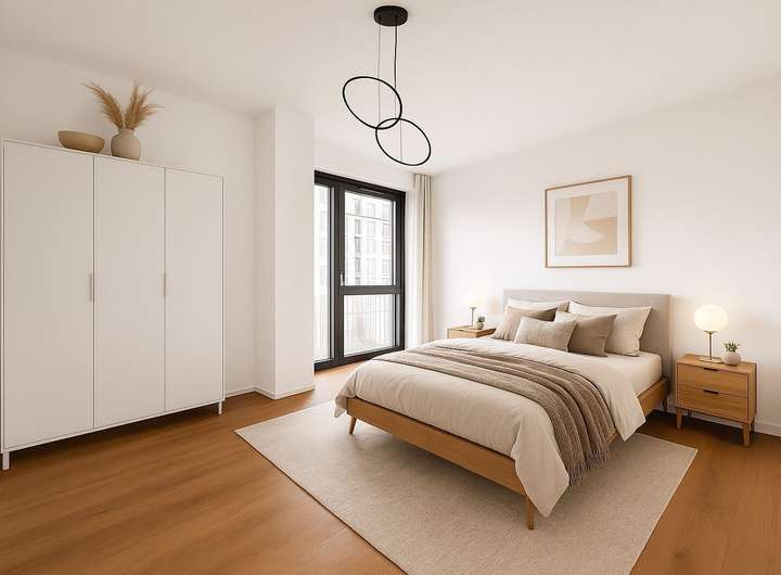 Die Wohnung befindet sich im Erdgeschoss (ohne Garten) eines modernen Neubaus und bietet eine Wohnfläche von ca. 57 qm. Sie besteht aus 2 Zimmern, darunter ein Schlafzimmer und ein großzügiges Badezimmer, ideal für Singles oder Paare.