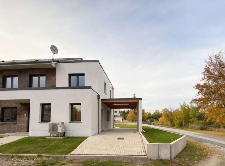 Diese moderne Doppelhaushälfte überzeugt nicht nur durch ihr stilvolles Design, sondern auch durch ihren energiesparenden KfW-55-Standard, der dauerhaft für niedrige Nebenkosten sorgt.
