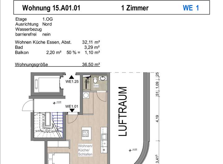Die 1-Zimmer-Neubauwohnung mit Balkon hat ca.36,50 qm die sich wie folgt aufteilen: