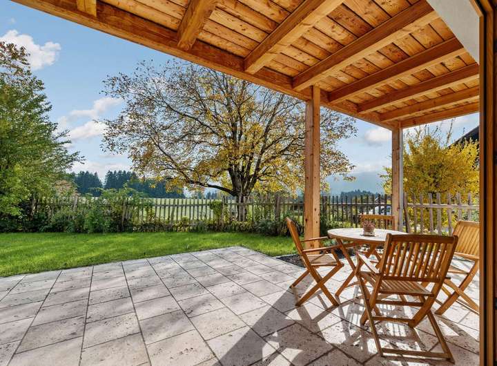 Genießen Sie die Ruhe und Natur auf der großzügigen Terrasse oder dem Balkon mit herrlichem Weit- und Bergblick. Der eigen großzügige Garten bietet ihnen viel Platz und Freiraum für ihre eigene kreative Gestaltung. Für Fahrzeuge stehen vier Carport-Stellplätze sowie zwei Garagenstellplätze zur Verfügung.