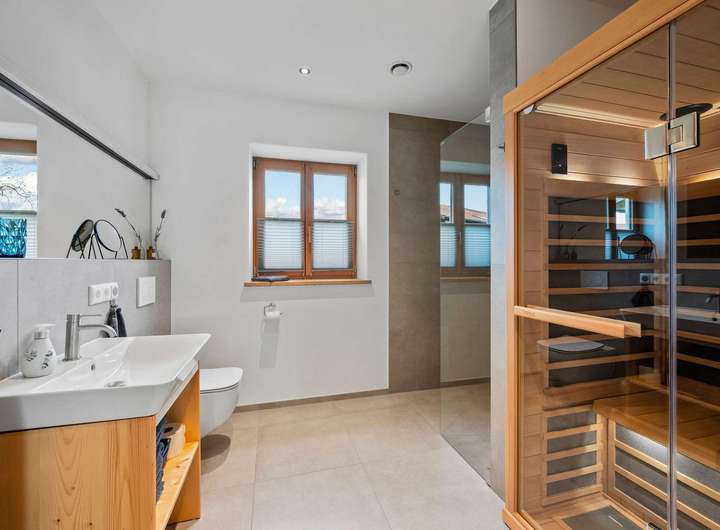 Dieses beeindruckende und komplett ausgestattete Zweifamilienhaus in ruhiger, naturnaher Lage am Riedl Wald bietet auf ca. 199 m² Wohnfläche und einem großzügigen Grundstück von ca. 1.695 m² ein Wohnkonzept, das keine Wünsche offenlässt. Ob als Generationenhaus, für zwei Familien oder zur Kapitalanlage – die Immobilie überzeugt durch Flexibilität, hochwertige Ausstattung und eine besondere Lage mit Weitblick auf Wiesen, Wald und Berge.