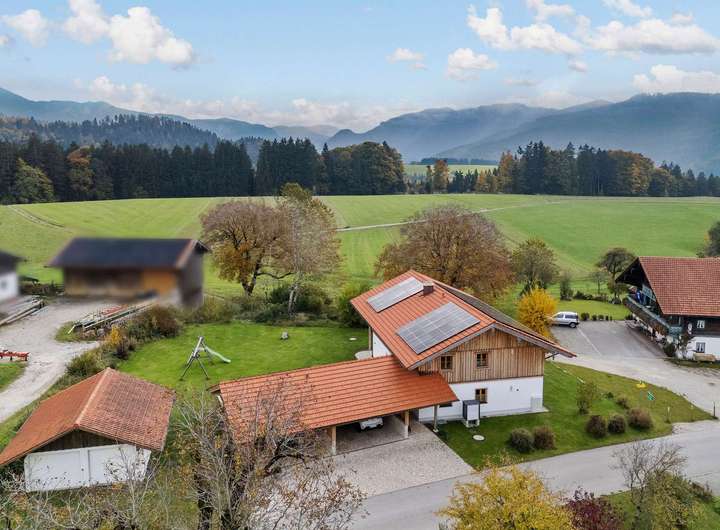 Die Liegenschaft befindet sich in exklusiver, Ortsrandlage auf einer Anhöhe im Chiemgau.