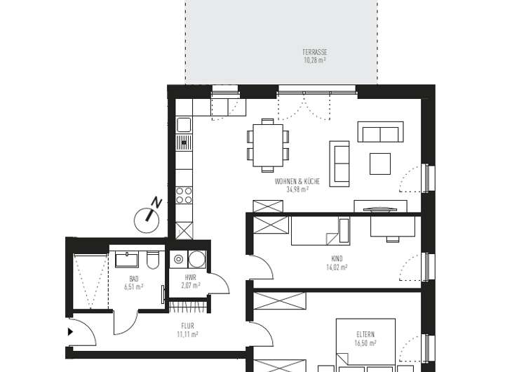 - Bodentiefe Fenster: Lassen viel Licht in die Räume und schaffen eine freundliche Atmosphäre.