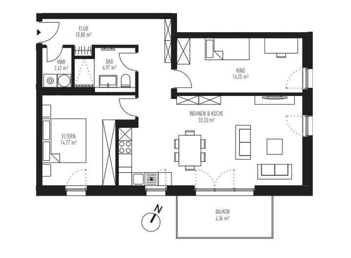 - Bodentiefe Fenster: Lassen viel Licht in die Räume und schaffen eine freundliche Atmosphäre.