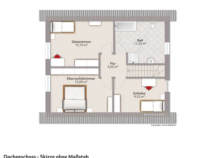 Im komplett ausgebauten Dachgeschoss des Hauses lässt es sich wunderbar entspannen. Neben zwei potentiellen Kinderzimmern, gibt es noch ein großes Elternschlafzimmer und ein zusätzliches top ausgestattetes Badezimmer mit Dusche, Wanne, WC und Bidet.