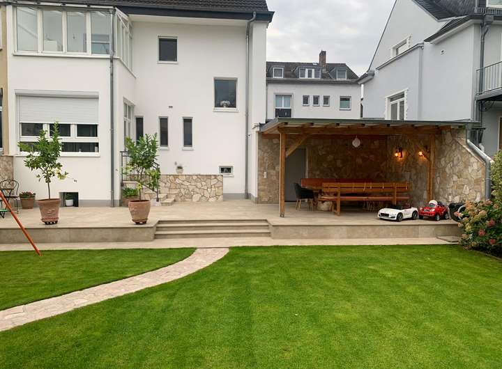 Großzügiger, gepflegter Garten mit Rasenfläche