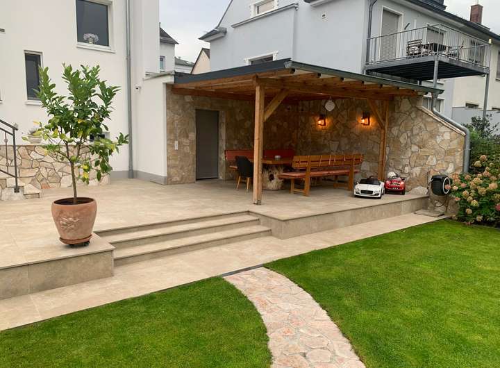 Überdachter Grillplatz / Außenkamin aus Naturstein