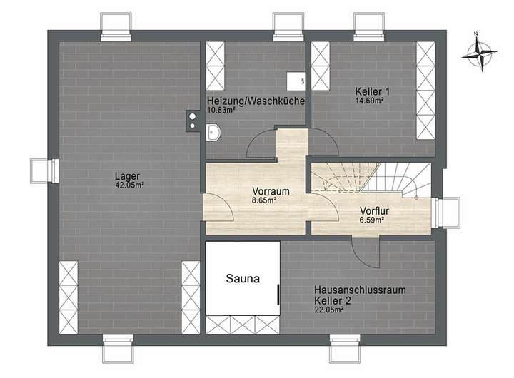 Das lichtdurchflutete Wohngebäude erstreckt sich auf ca. 167 m² Wohnfläche über 2 Etagen und vefügt über 4 Wohnräume, offener Küche und 2 Bäder. Dazu stehen ca. 102 m² Vollkeller mit bewohnbaren, beheizten Räumen zur Verfügung.