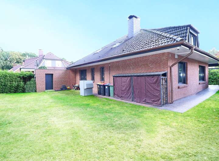 Das freistehende Einfamilienhaus wurde im Jahre 1987 in hochwertiger Architektenbauweise mit Walmdach und zwei Gauben erstellt. Es steht auf einem ca. 600 m² großen Grundstück in nord-südlicher Ausrichtung mit direktem Zugang zum Volksdorfer Wald. Das Wohnhaus besticht durch einen eleganten, modernen Stil und zeichnet sich durch seinen hoch- und neuwertigen, äußerst gepflegten Zustand aus.
