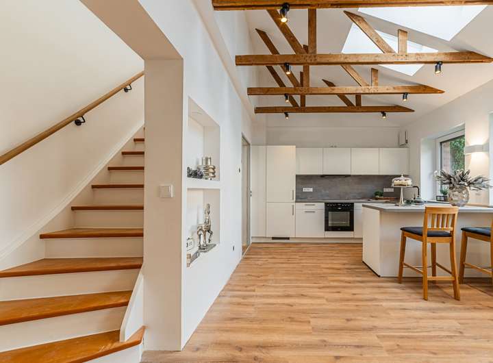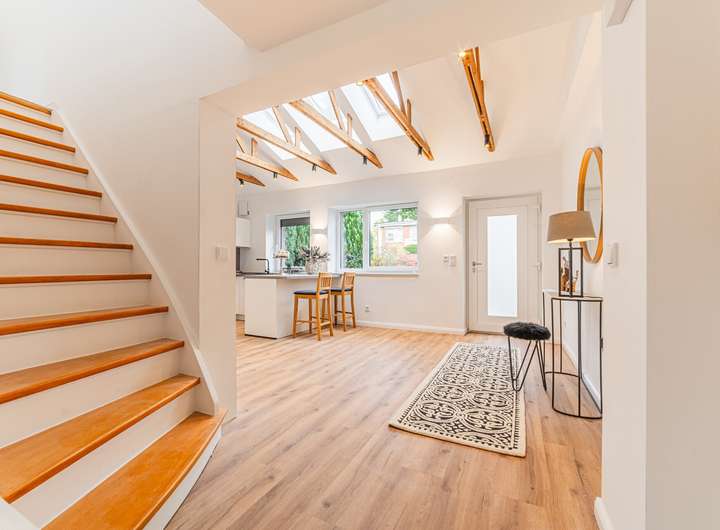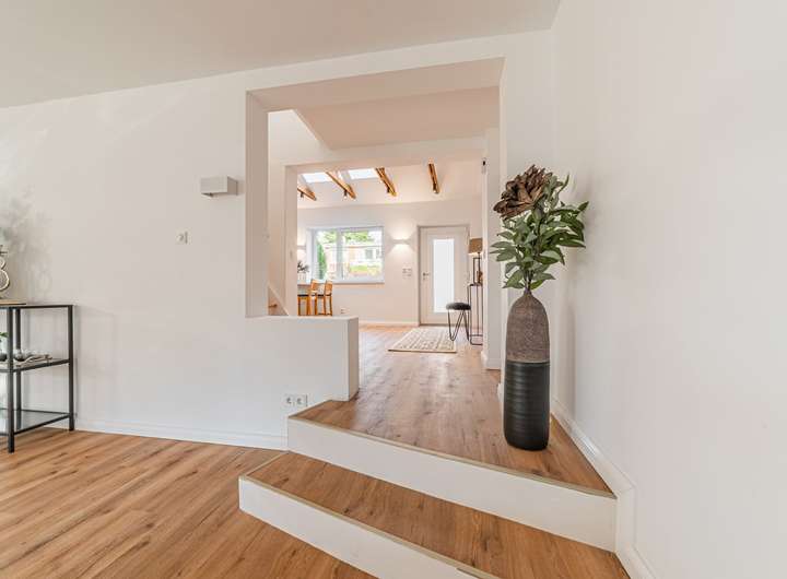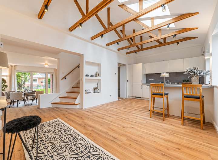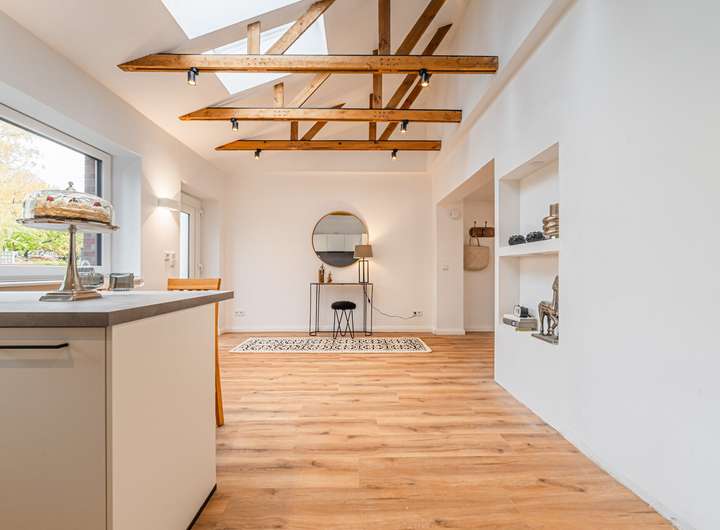 Das 1958 erbaute Haus wurde in 2025 Jahren mit viel Liebe zum Detail und höchstem Qualitätsanspruch kernsaniert und das spürt man vom ersten Moment an: helle, offene Räume, warme Oberflächen und ein angenehmes Raumklima, das durch die dezentrale Lüftung stets frisch bleibt – ganz ohne Zugluft oder stickige Luft.