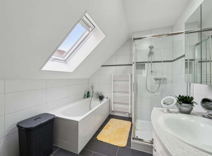 Beheizt wird das Haus über eine Gaszentralheizung, mit Fußbodenheizung im Erdgeschoss und modernen Heizkörpern im Obergeschoss.