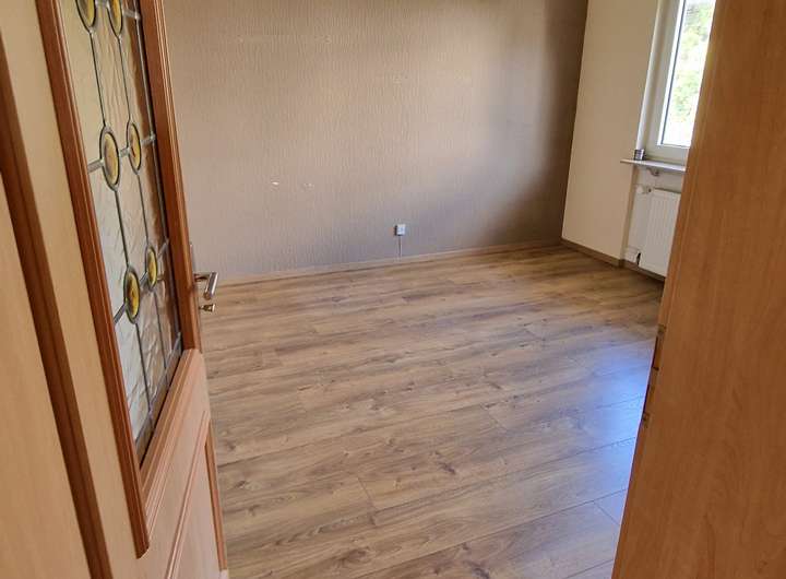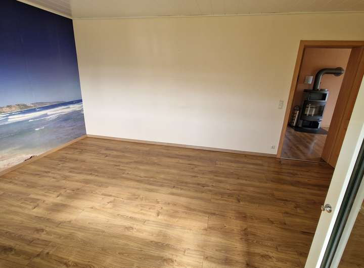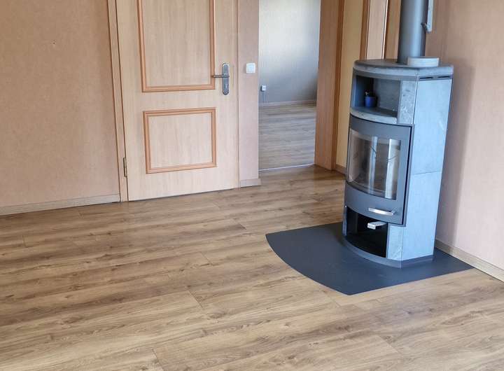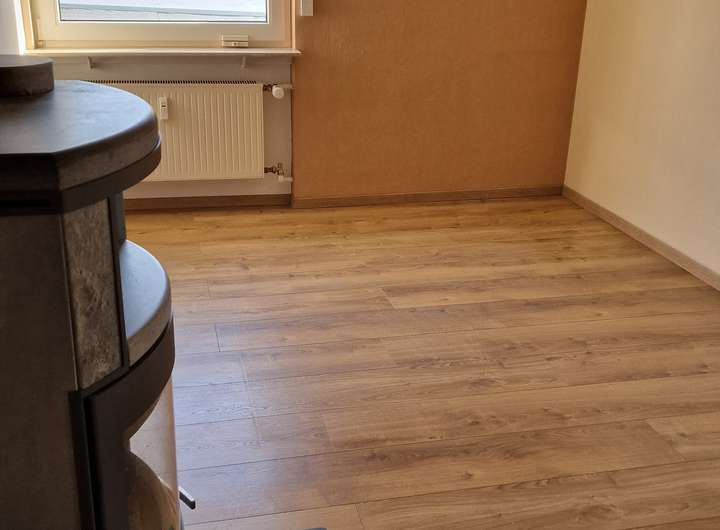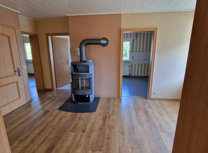 - Diele (Esszimmer), Wohnzimmer, Schlafzimmer, Kinderzimmer (Büro), Küche, Bad, Kaminofen