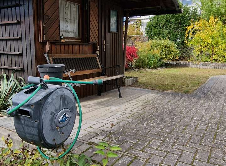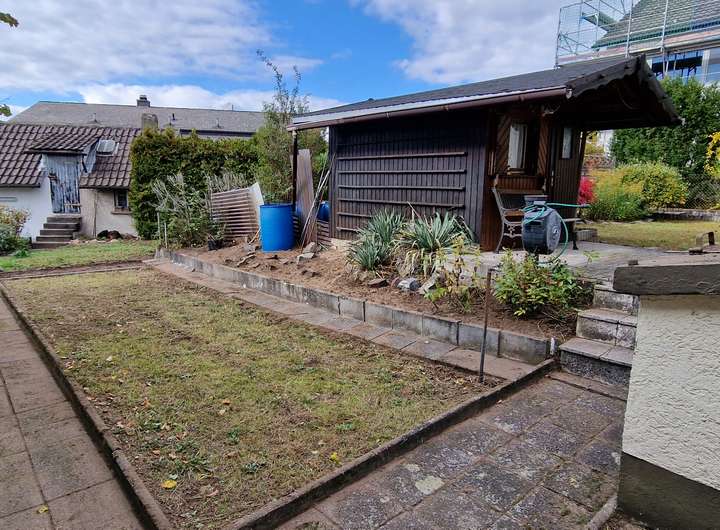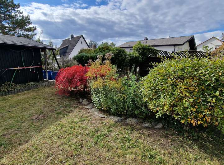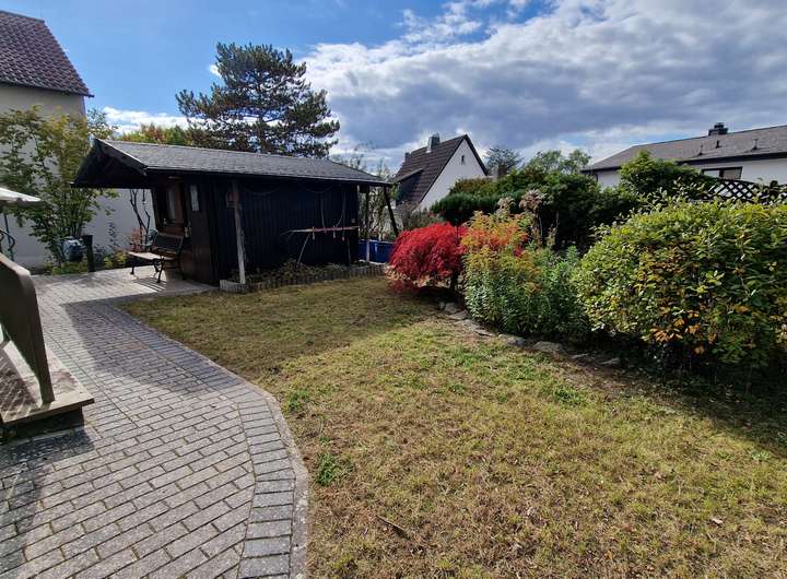 • Garten mit Gartenhütte und Teich